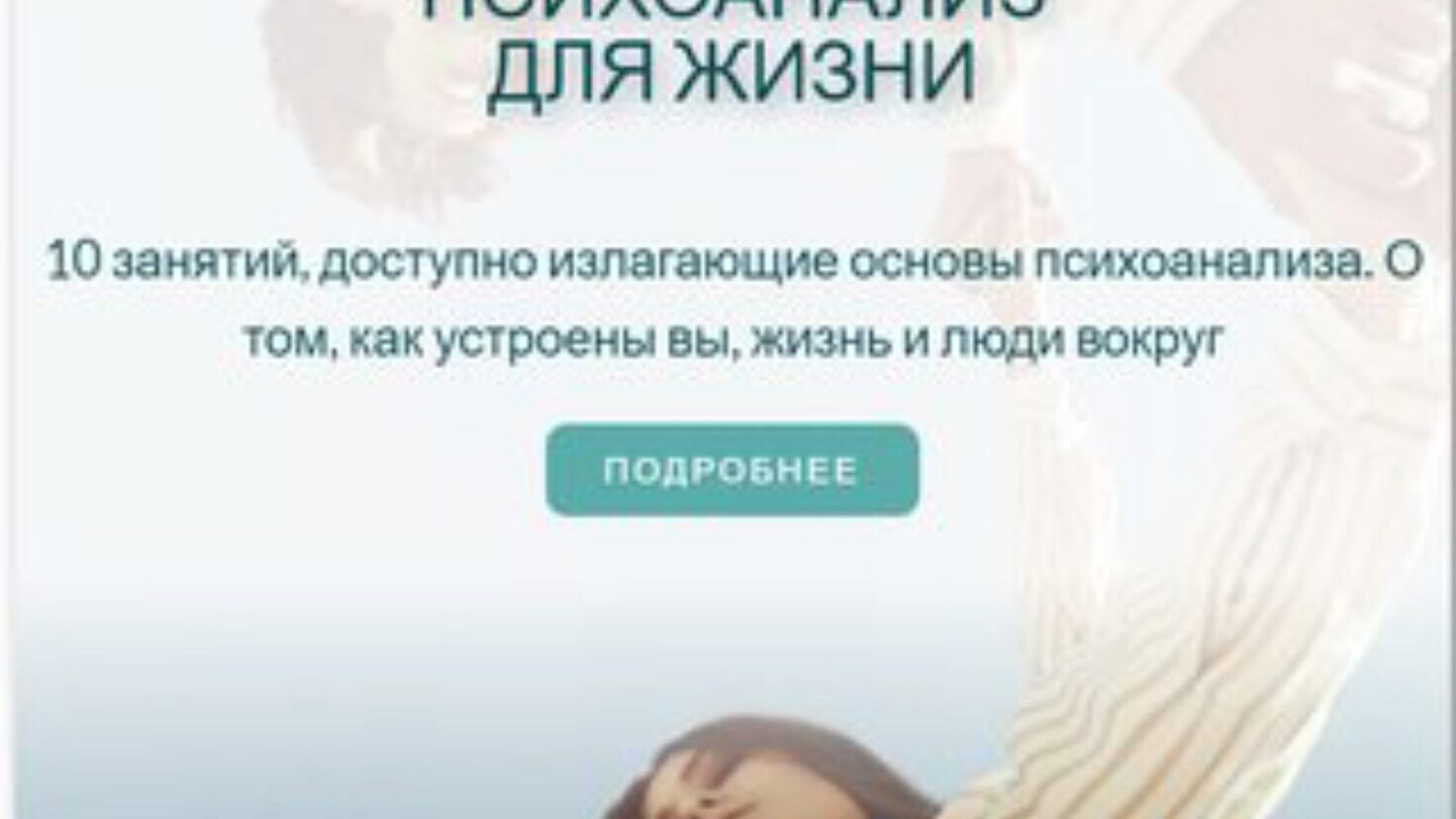 Чему вы научитесь «Психоанализ для жизни» — это современный психоаналитический взгляд на понимание внутренней и внешней реальности человека настоящего времени и возможностей психоанализа и психоаналитической психотерапии. Описание В модулях представлен обширный психоаналитический материал: от