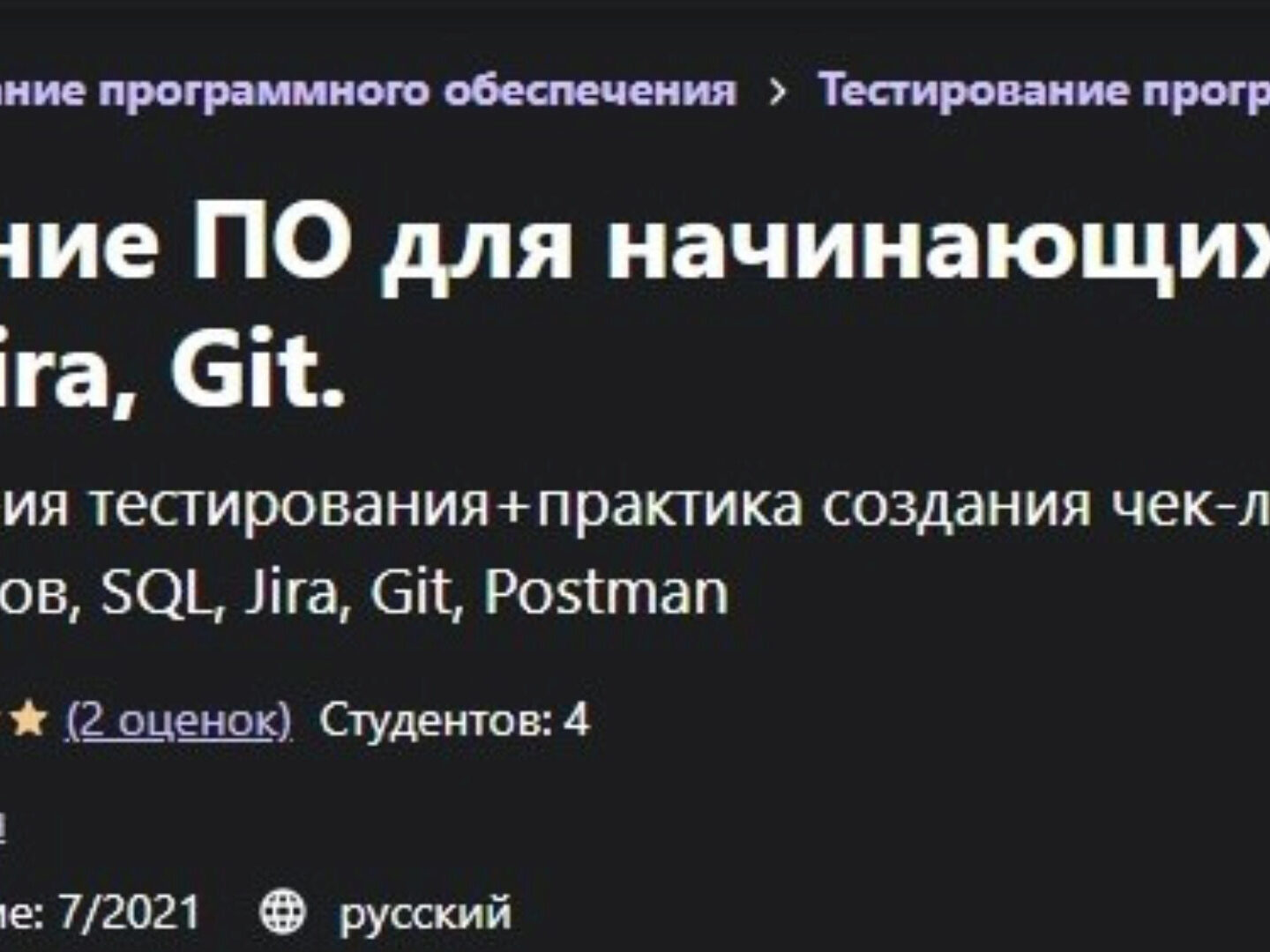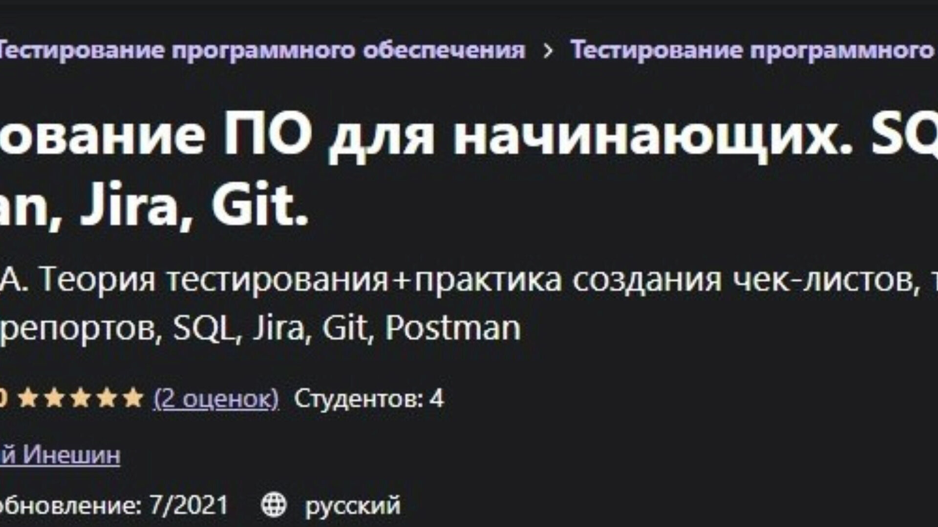 Дмитрий Инешин «Тестирование ПО для начинающих. SQL, Postman, Jira, Git (2021)» — Udemy слив скачать