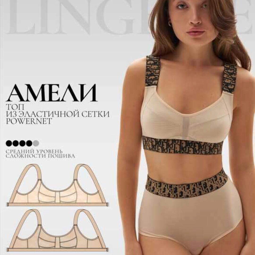 Курс lekalolingerie - Топ Амели. Размер XXL, автор 80D. Топ. Чашка состоит из центральной части из 3 частей. Передняя деталь чашки, средняя деталь и боковая в 2 слоя для лучшей поддержки. Пояс с боковым швом. Застёжка - крючок бельевой шириной 30 мм или застёжка для купальника. Резинка под грудью и бретели широкие - 3 см. Для определения размера достаточно мерки - обхват груди. Если будете шить топ из обычной упругой сетки с к.э. 0,83, то советую взять на 1 размер меньше.