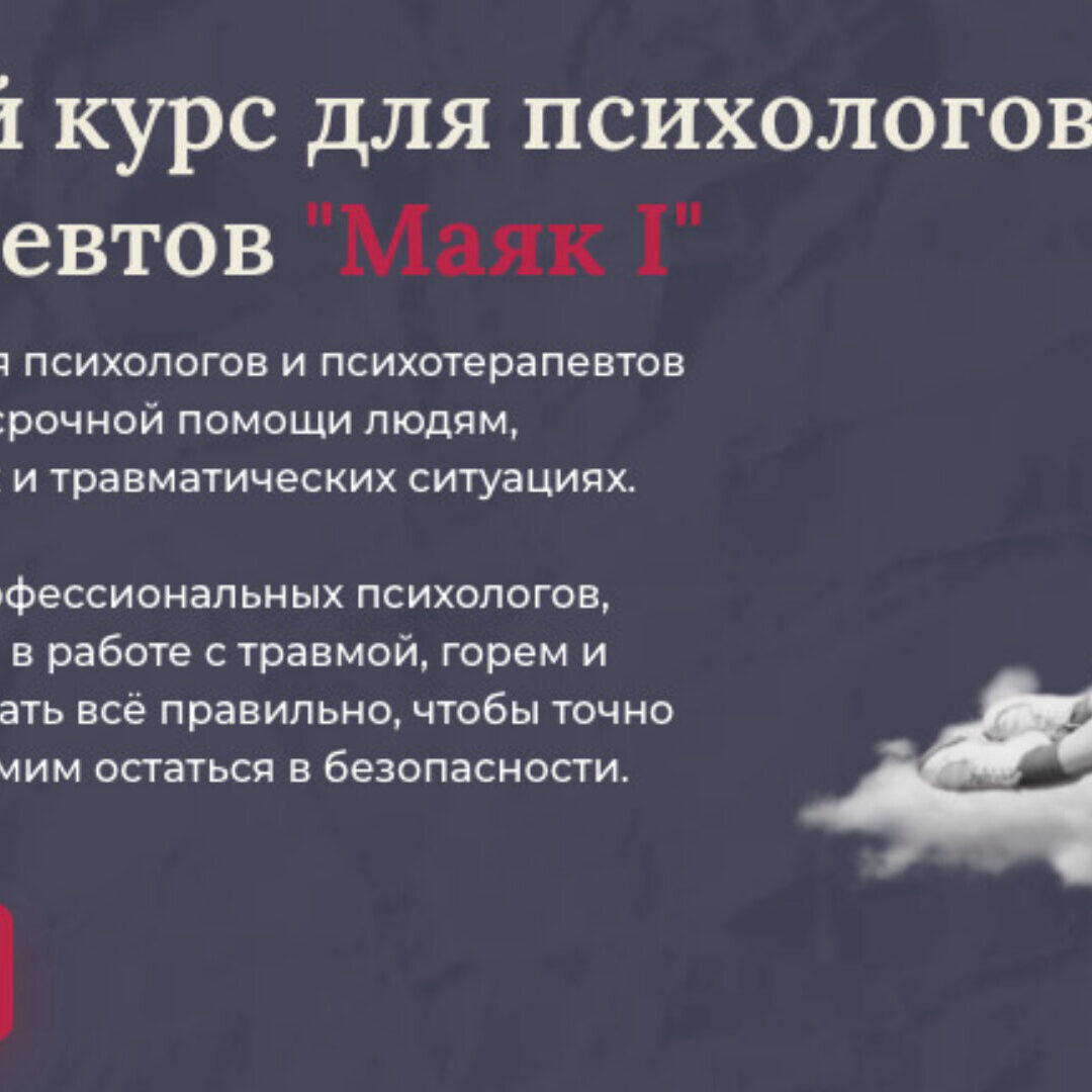 Обучающий курс для психологов и психотерапевтов Маяк I. Тариф Все модули, автор Аглая Датешидзе. Обучающая программа для психологов и психотерапевтов по краткосрочной и долгосрочной помощи людям, оказавшимся в стрессовых и травматических ситуациях.
