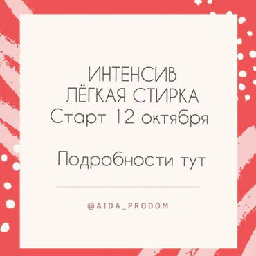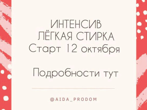 Старт - 20 сентября 4 прямых эфира + авторский гайд по стирке. Гайд это методичка на все случаи постирочной жизни. 77 страниц текста. Формат PDF, как книга. Бывалые участницы моих курсов рекомендуют сразу методичку распечатать и сшить. Потом и дочке и внучке пригодится. Уже почти 4500 женщин по
