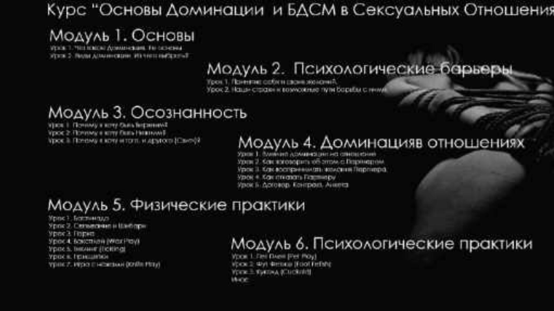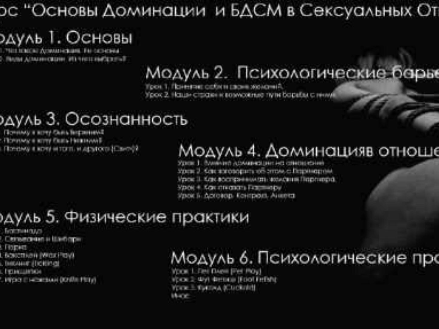 14 коротких информативных и крайне полезных видео уроков по основным Физическим Практикам БДСМ