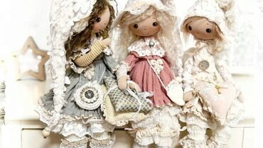 - Создание сидячей текстильной куклы из трикотажа, поворотная головка, ушки пальчики, роспись личика, натуральные трессы.