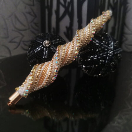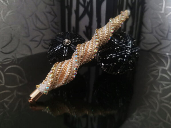 Мастер - класс в пдф формате на 35 страницах и 110 фото с пояснениями. Необходимые навыки - уметь вязать жгуты Вяжется с петлей подъема! Благодаря этому МК вы получите не только красивое и ювелирное украшение, но и узнаете сами принципы его создания. Научитесь ввязывать в жгут различные бусины и