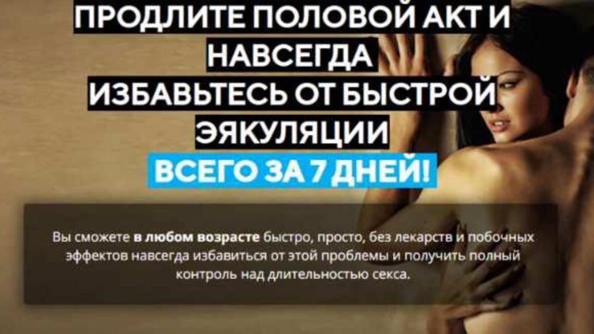 Его цель – помочь Вам оперативно скорректировать проблему ранней эякуляции «здесь и сейчас». Мы дадим Вам несколько рабочих комбинаций из наружных пролонгирующих средств и определенных техник, чтобы Вы могли гарантированно уже в этот вечер продлить свой половой акт на 5-10 минут.