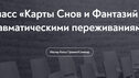 Каждый участник МК получит достаточно полное представление о возможностях «Карт Снов и Фантазий» для проработки травматического опыта, а также обзор техник работы с картами, применяемых как в профессиональной деятельности, так и для самопомощи.