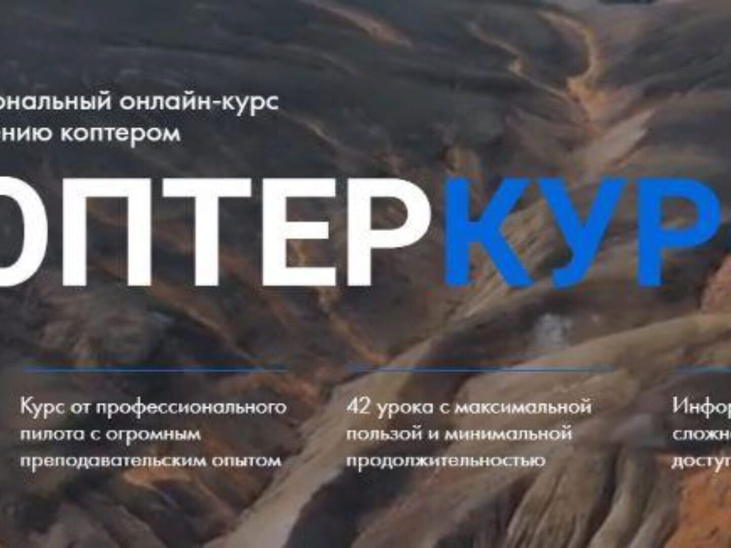 42 урока. 6 лет опыта в аэросъемке. Время прохождения курса: от 7 до 30 дней.