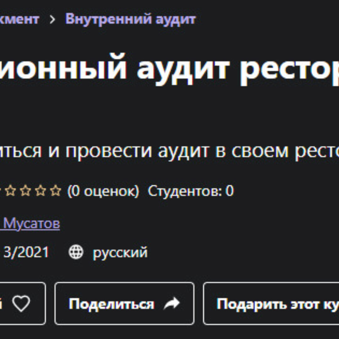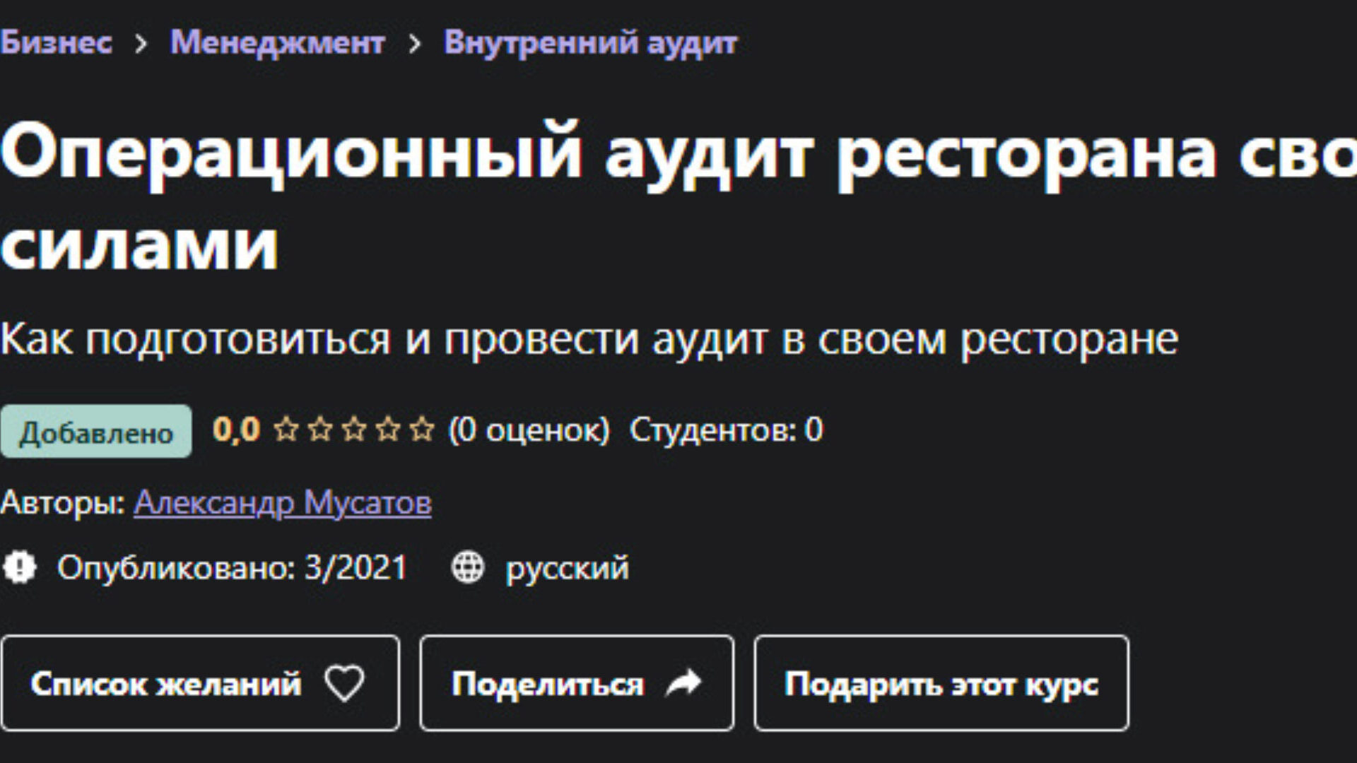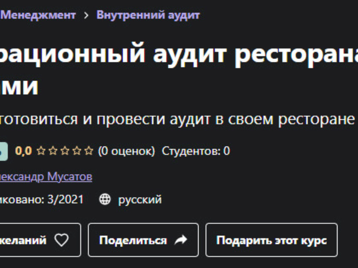 Александр Мусатов «Операционный аудит ресторана своими силами» — Udemy слив скачать