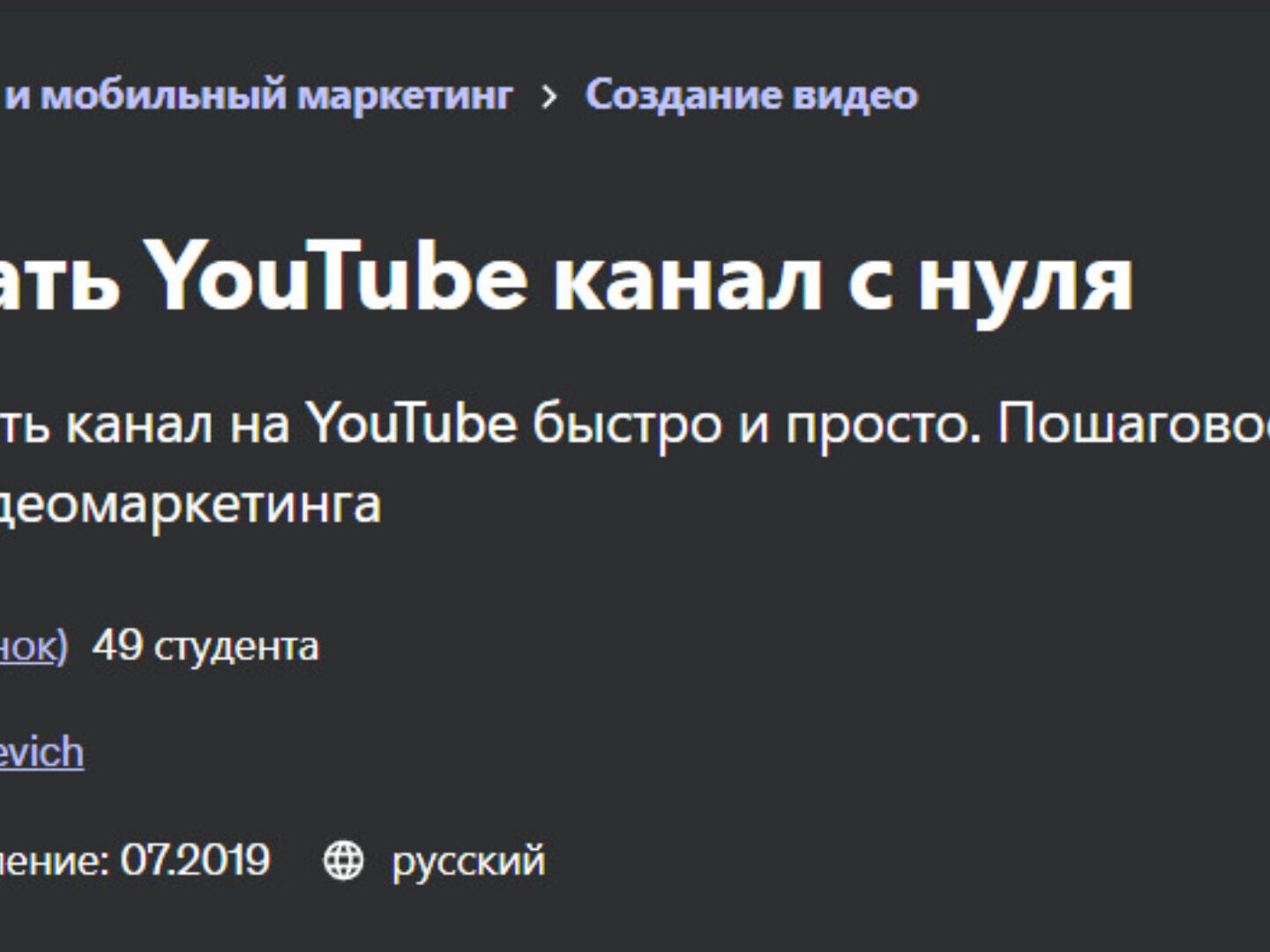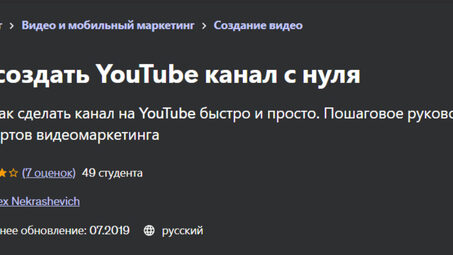 Курс Udemy - Как создать YouTube канал с нуля, автор Александр Некрашевич. Узнай, как сделать канал на YouTube быстро и просто. Пошаговое руководство от экспертов видеомаркетинга