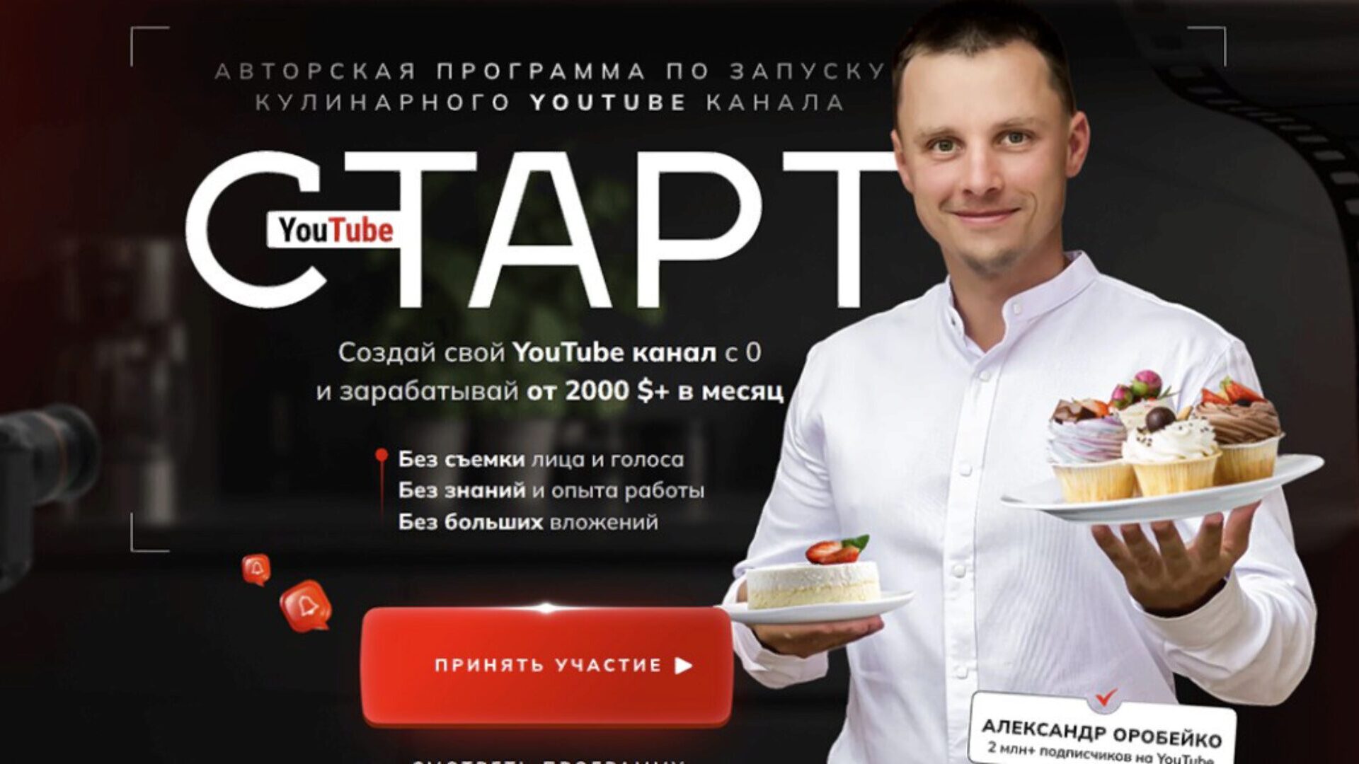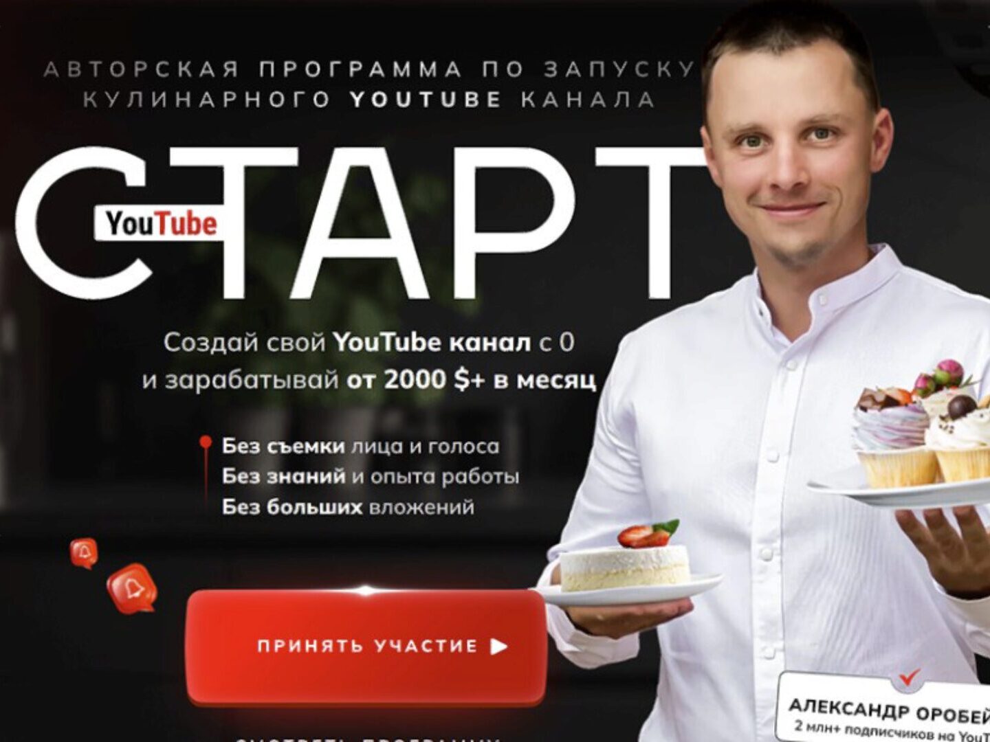 Александр Оробейко «YouTube старт. Авторская программа по запуску кулинарного YouTube канала. Тариф Start» слив скачать