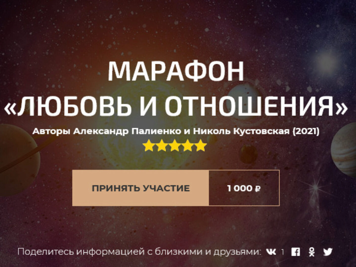Курс Любовь и отношения, автор Александр Палиенко. Уникальный опыт в течение 27-ми дней получили 40 000 участников, мягко и бережно работая с полем вместе с создателями марафона Николь и Александром.