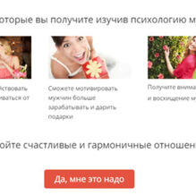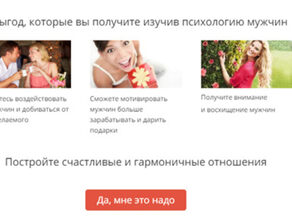 Девиз программы: Сделай свои отношения счастливыми, помоги ему в тебя влюбиться еще сильнее. Цель программы: Навсегда избавить вас от вредных квантов вашего поведения и блоков в женском сознании, которые мешают понимать мужчин и строить самые лучшие отношения в мире! Пройдя программу, вы сможете: