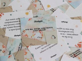 Это цифровой товар. Сто пятьдесят сильных открытых вопросов. В документе – десять страниц, на каждой – по пятнадцать вопросов. Скачайте файл, распечатайте его в ближайшей типографии на плотной бумаге и попросите разрезать на карточки. Ещё вариант – распечатать на клейкой бумаге – и получатся