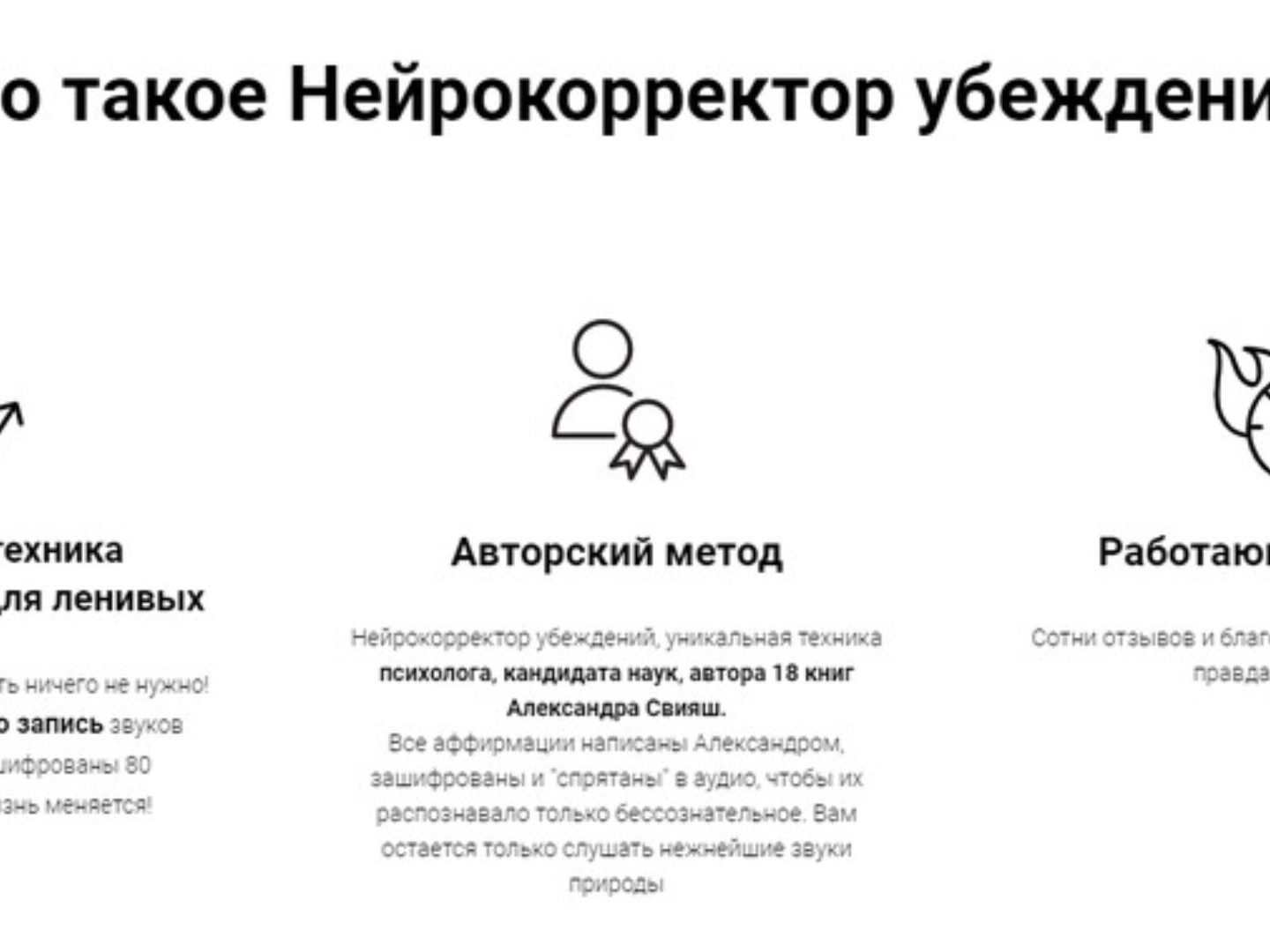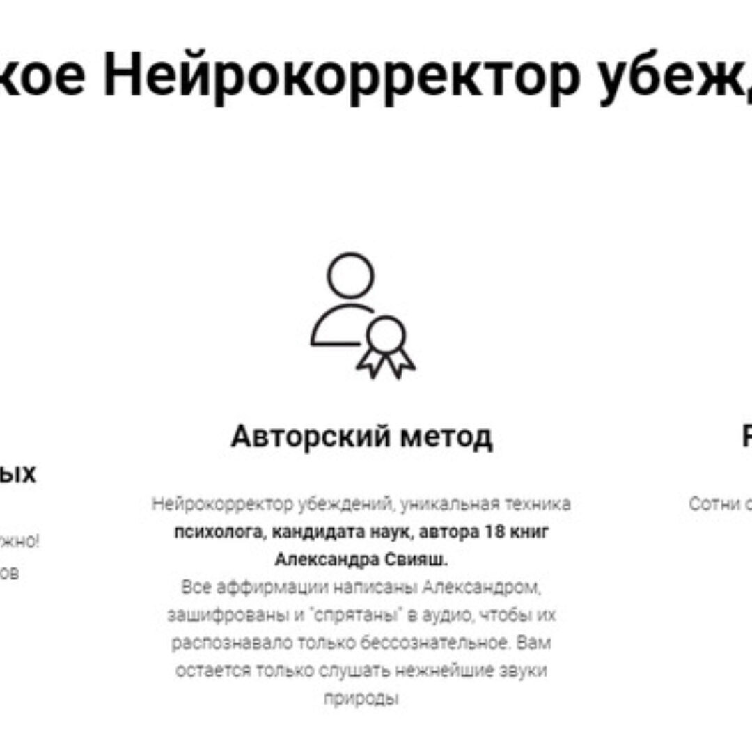 Что такое Нейрокорректор убеждений Уникальная техника увеличения дохода для ленивых Да, вы не ослышались! Делать ничего не нужно! Просто слушаете аудио запись звуков природы, в которых зашифрованы 80 аффирмаций увеличивающих доход... и он растет! Авторский метод Нейрокорректор убеждений, уникальная
