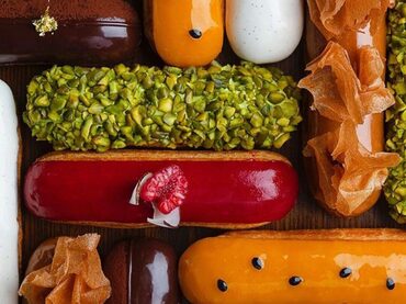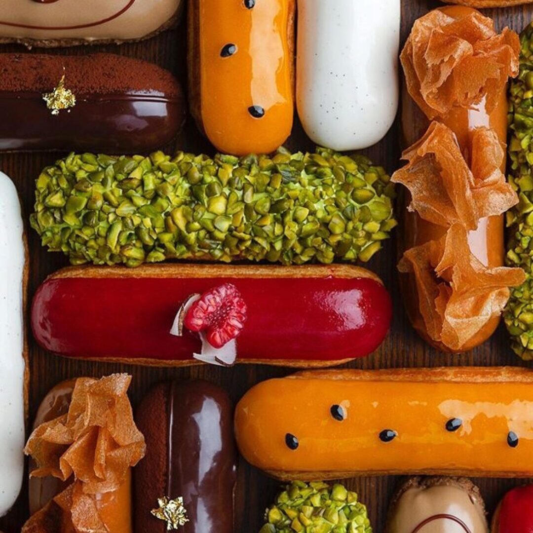 Обучение в формате прямой трансляции с возможностью приобрести доступ к записи. 3-4 мая «Взрослые эклеры». Эклеры со сладкими начинками и декором, с алкоголем в составе. Преподаватель Полина Егорова. 5 мая «Сытные эклеры» Эклеры с несладкими начинками и декором (овощи, птица, рыба, грибы).