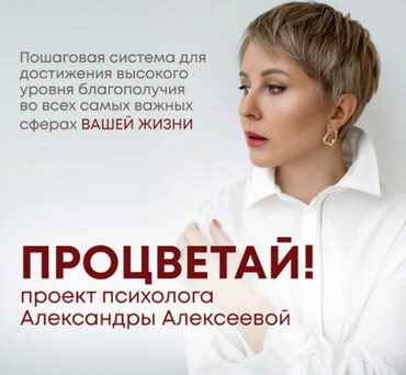 Проект психолога Александры Алексеевой, которая состоит из 4 шагов: 1. Я целостный 2. Я и мои деньги 3. Я и социум 4. Я управляю своей реальностью Почему в реальности процветают единицы: Те, кто воспитывал нас, заложили в нас негативные программы и сценарии, которые не дают нам чувствовать себя в