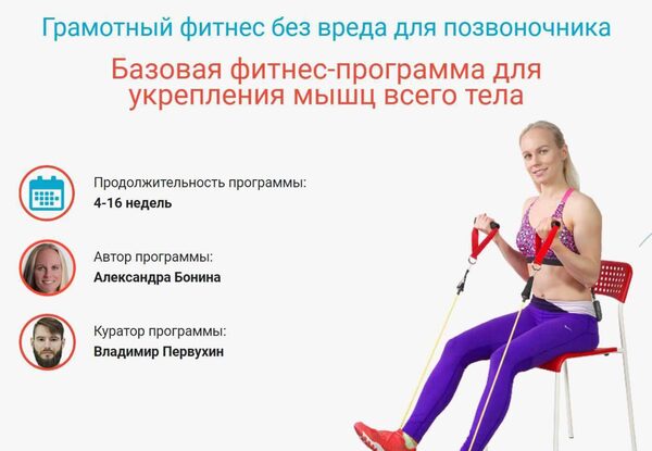 Александра Бонина «Грамотный фитнес без вреда для позвоночника — этап 1 и 2» слив скачать