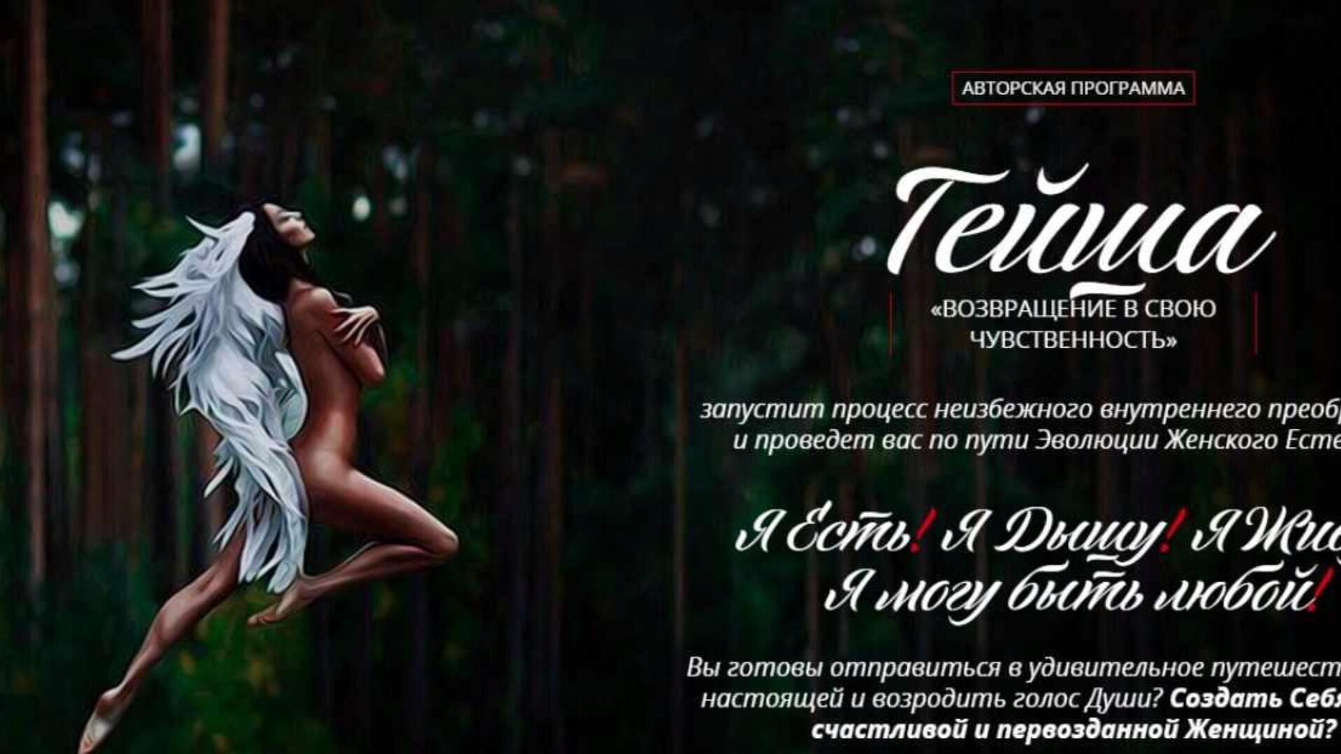 - Создадите новую себя: чувственную, живую, свободную, окрыленную счастьем и гармонией, настоящую Женщину.