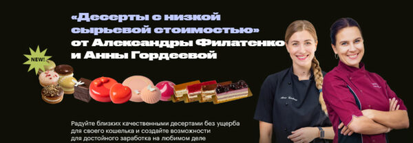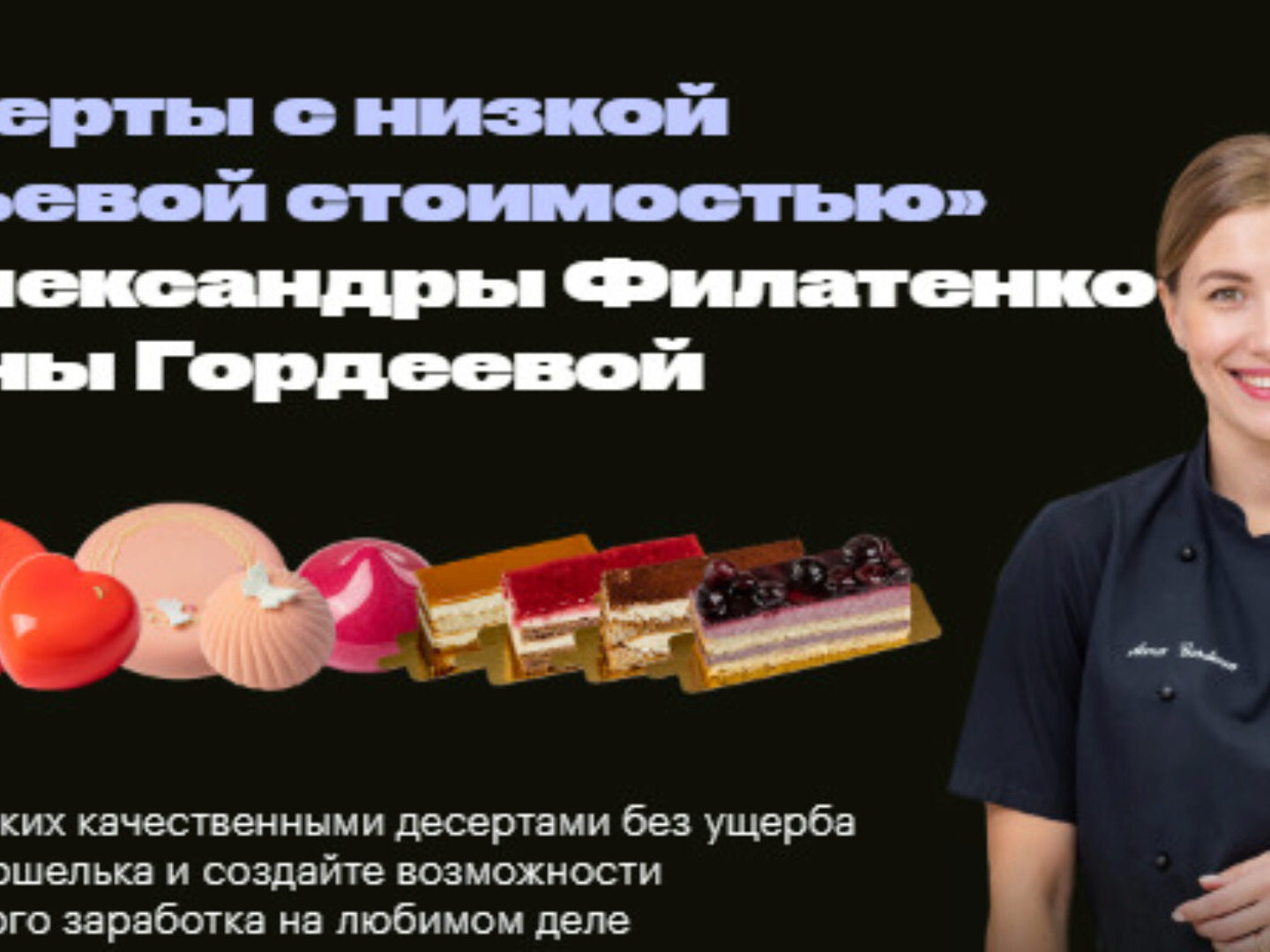 Курс Десерты с низкой сырьевой стоимостью. Тариф хочу всё и сразу, автор Александра Филатенко, Анна Гордеева. Радуйте близких качественными десертами без ущерба для своего кошелька и создайте возможности для достойного заработка на любимом деле
