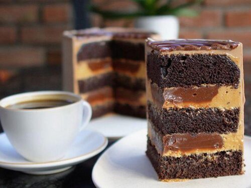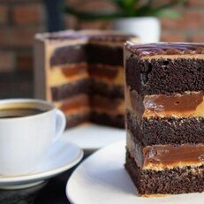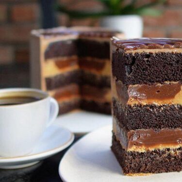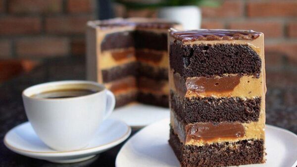 1. Воздушные коржи с шоколадной крошкой, имитирующие печенье 2. Нежный крем на заварной карамельной основе и взбитых сливках