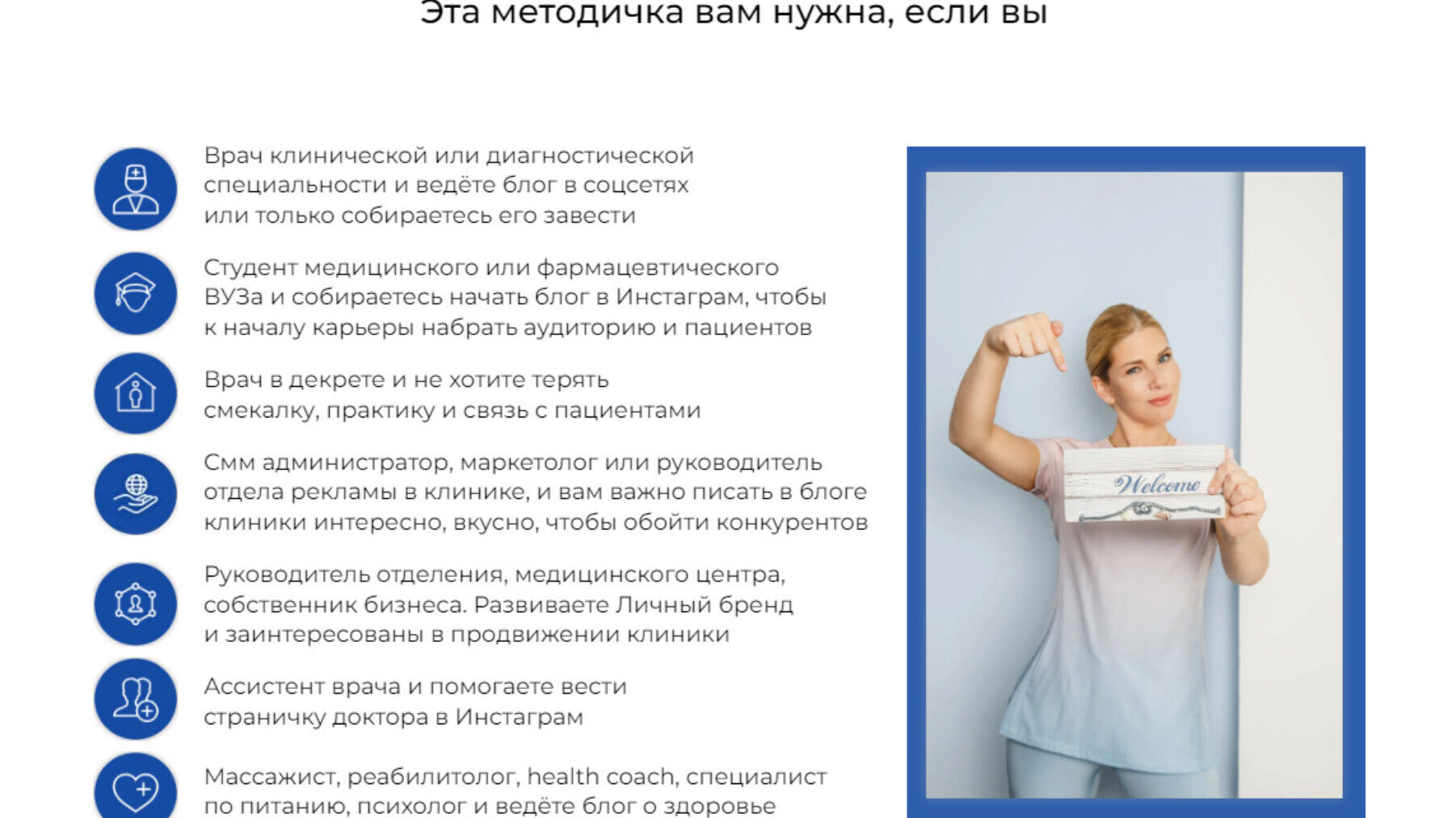 - Руководитель отделения, медицинского центра, собственник бизнеса. Развиваете Личный бренд и заинтересованы в продвижении клиники