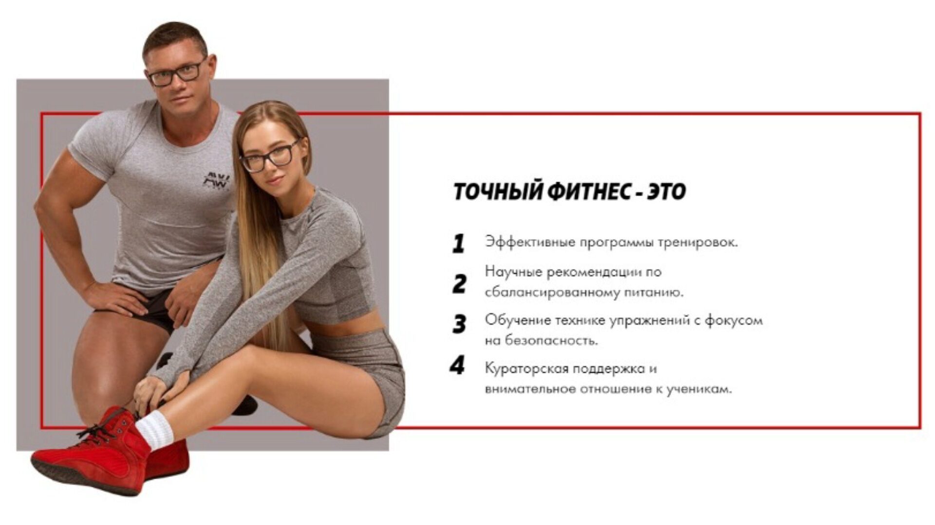 Тренировочные курсы Саши Митрошиной и Димы Путылина. Достигайте результата, пользуясь новейшими научными данными в области спортивной физиологии и нутрициологии. ТОЧНЫЙ ФИТНЕС - ЭТО Эффективные программы тренировок. Научные рекомендации по сбалансированному питанию. Обучение технике упражнений с