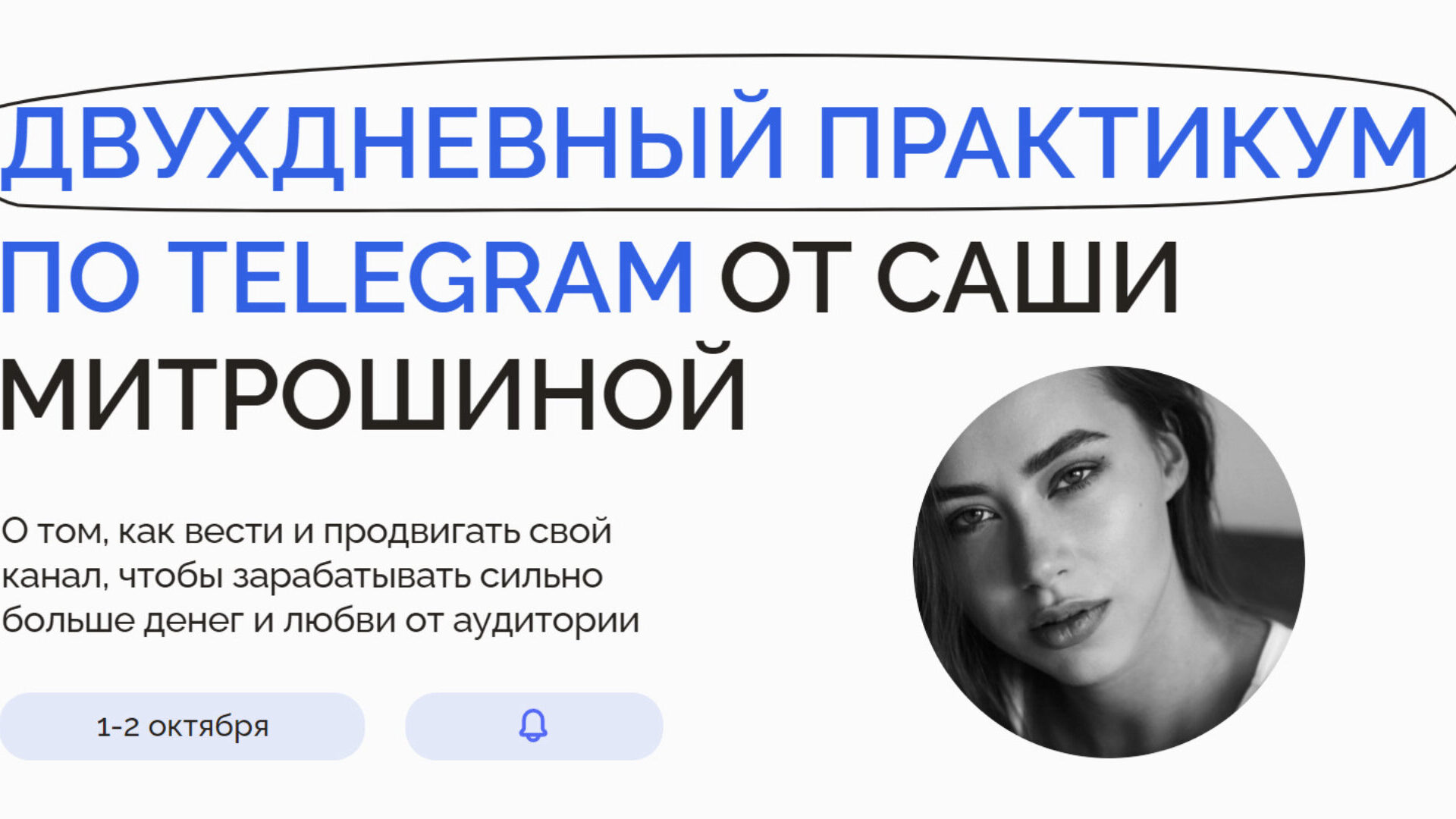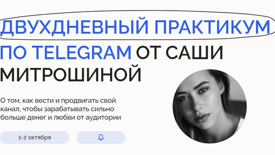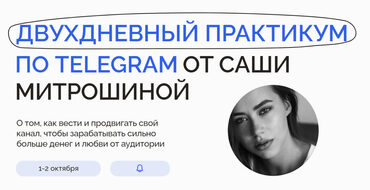 Курс Двухдневный практикум по Telegram. Тариф 2, автор Александра Митрошина. О том, как вести и продвигать свой канал, чтобы зарабатывать сильно больше денег и любви от аудитории