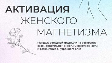 Да, Вы можете получить получить бесплатно фрагмент курса «Мандала Активация женского магнетизма. Раскрытие внутреннего огня и женственности», просто напишите на почту или в телеграм
