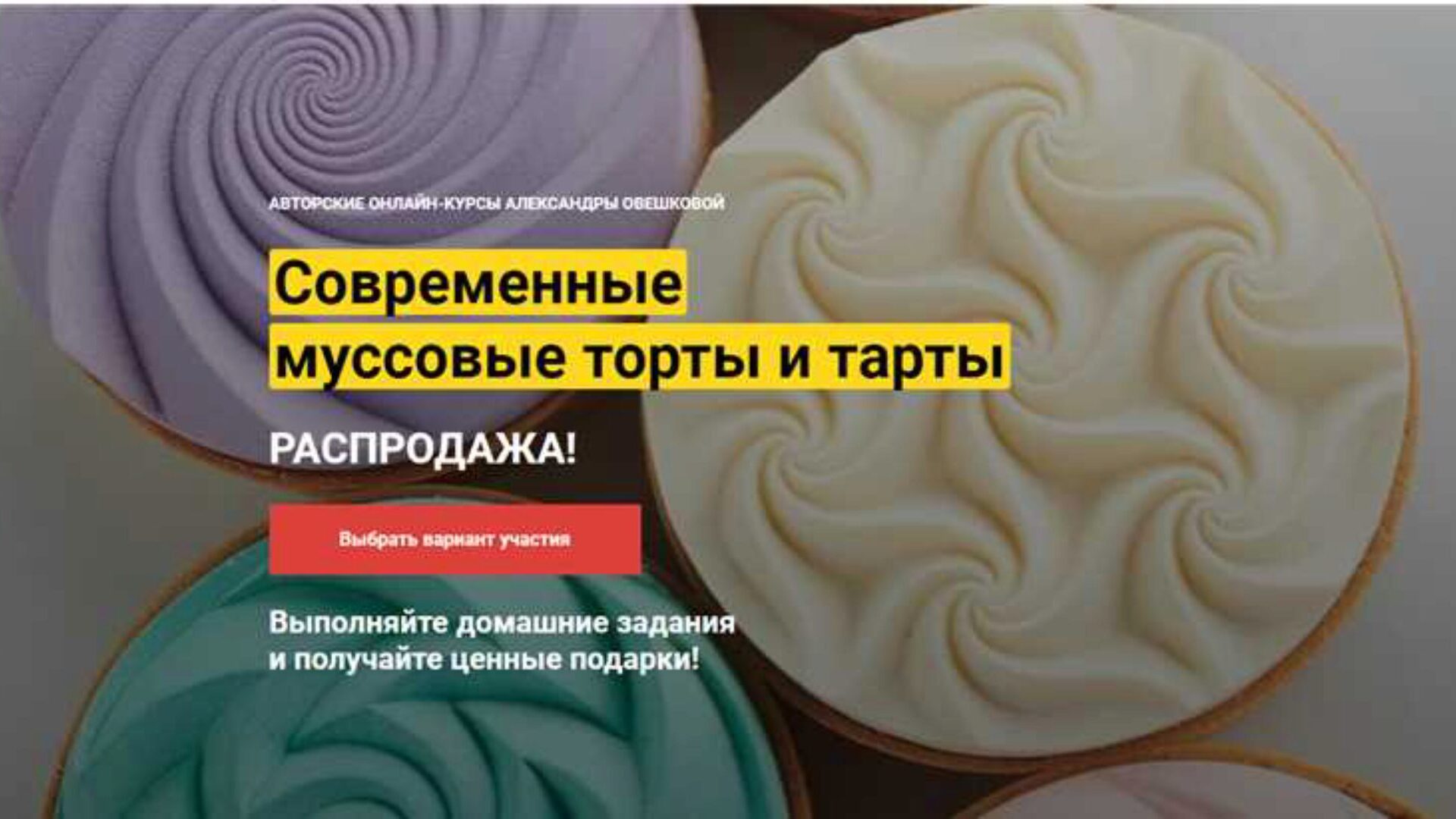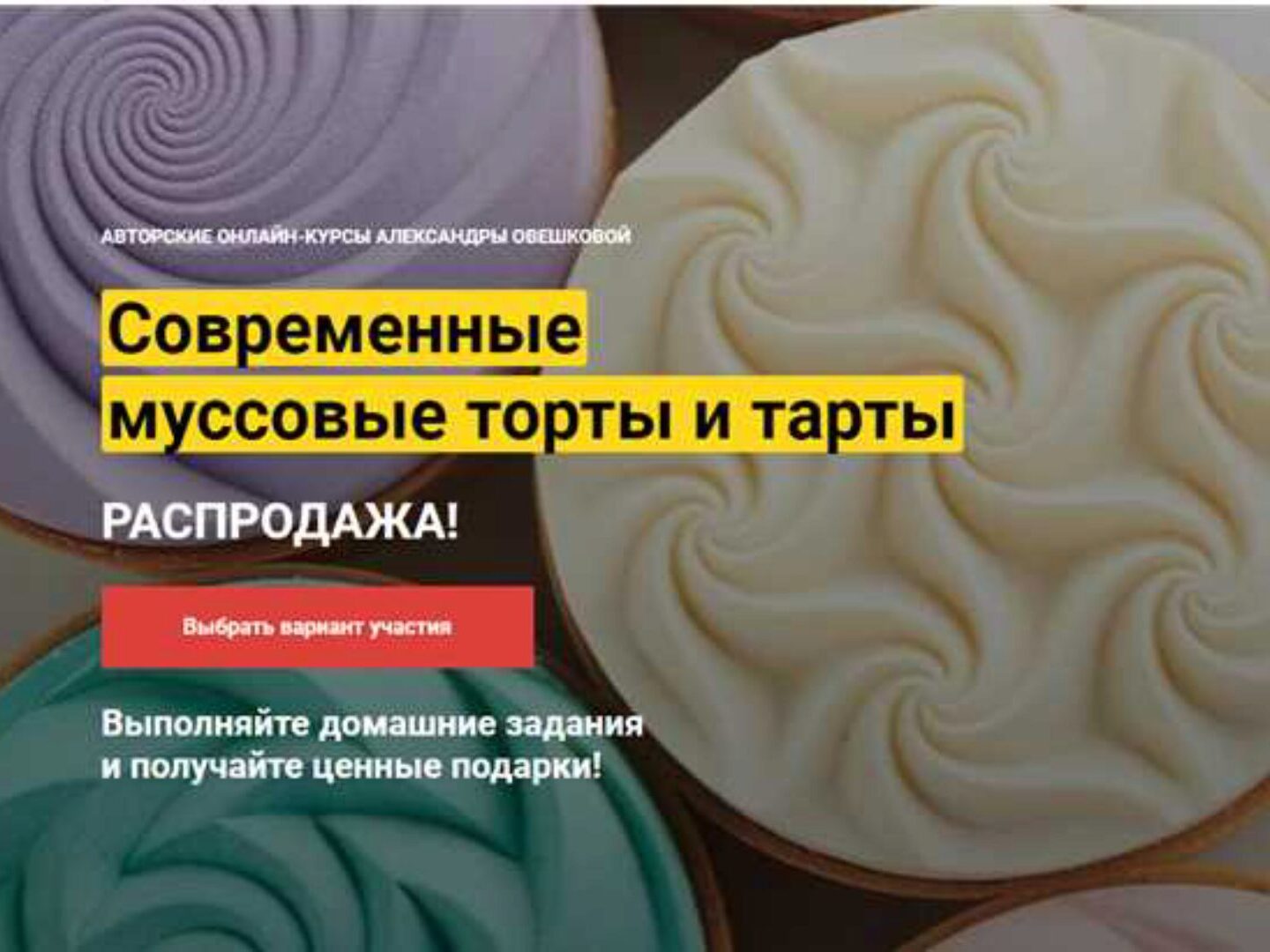 Александра Овешкова Современные муссовые торты и тарты . Тариф «2 курса в одном пакете» — Cake Pro слив скачать