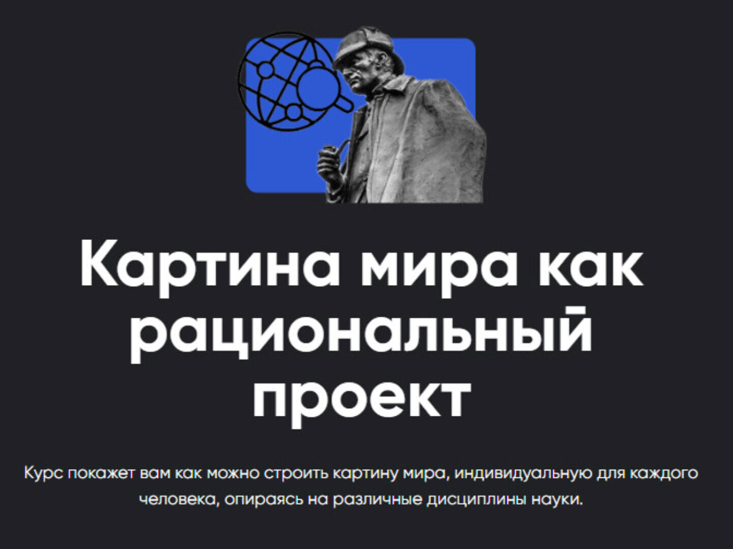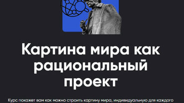 Курс покажет вам как можно строить картину мира, индивидуальную для каждого человека, опираясь на различные дисциплины науки. Откуда всё взялось, и ради чего это всё — Вселенная, жизнь, человечество, я? Ради чего стоит жить, а то и жертвовать жизнью, в чем подлинные ценности и святыни, какова их