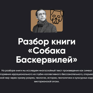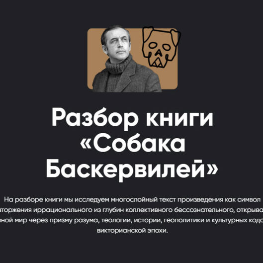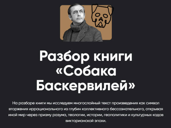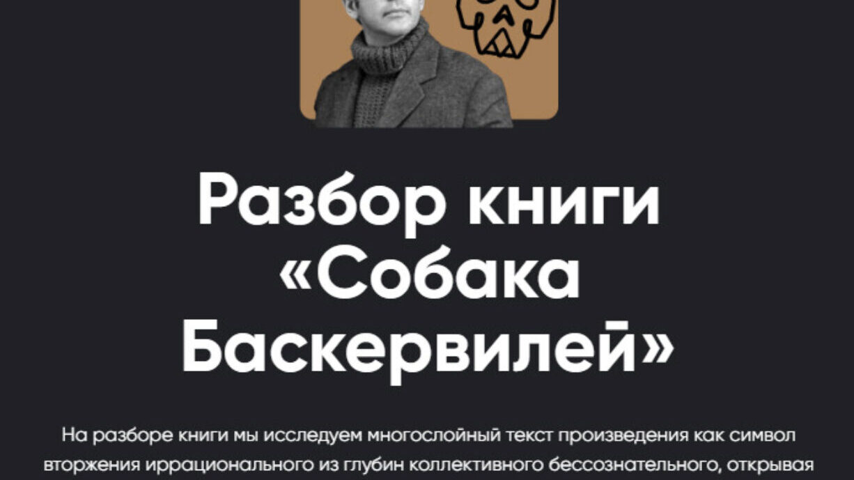 Вас ждет уникальное событие — совместный литературный этюд по разбору и переосмыслению культовой повести Артура Конан Дойля «Собака Баскервилей». Эта книга — квинтэссенция западной цивилизации, символический текст, в котором переплетаются рациональное и иррациональное. Ее текст полон неочевидных слоев, каждый из которых скрывает особые ключи к пониманию картины мира современного человека.