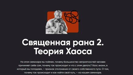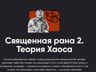 Это один из базовых семинаров для понимания человека и его места в мире. На семинаре вы узнаете о сути Священной раны, законах этого пути, сущности каждого этапа эволюционной лестницы, правилах движения и перехода. У каждого есть своя уникальная Ахиллесова пята. В начале пути она кажется слабостью