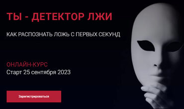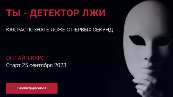 Если хочешь изучить приемы распознавания лжи и начать зарабатывать на этом деньги! •40 часов видео •Прикрепленый коуч-инструктор •Три месяца поддержки при обучении •+ Бонус Монетизация Ваших знаний Задача курса: научить «человека с улицы» уже через месяц распознавать ложь по различным признакам