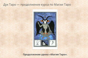 Продвинутый курс по Таро «Черный Гримуар» Требуемый уровень подготовки: умеете делать расклады, знакомы с колодой. Либо проходили базовый курс по колоде. Материалы, представленные в данном курсе, отличаются от базового, углублены и расширены. Дополнительно включены ценные записи прямых эфиров с