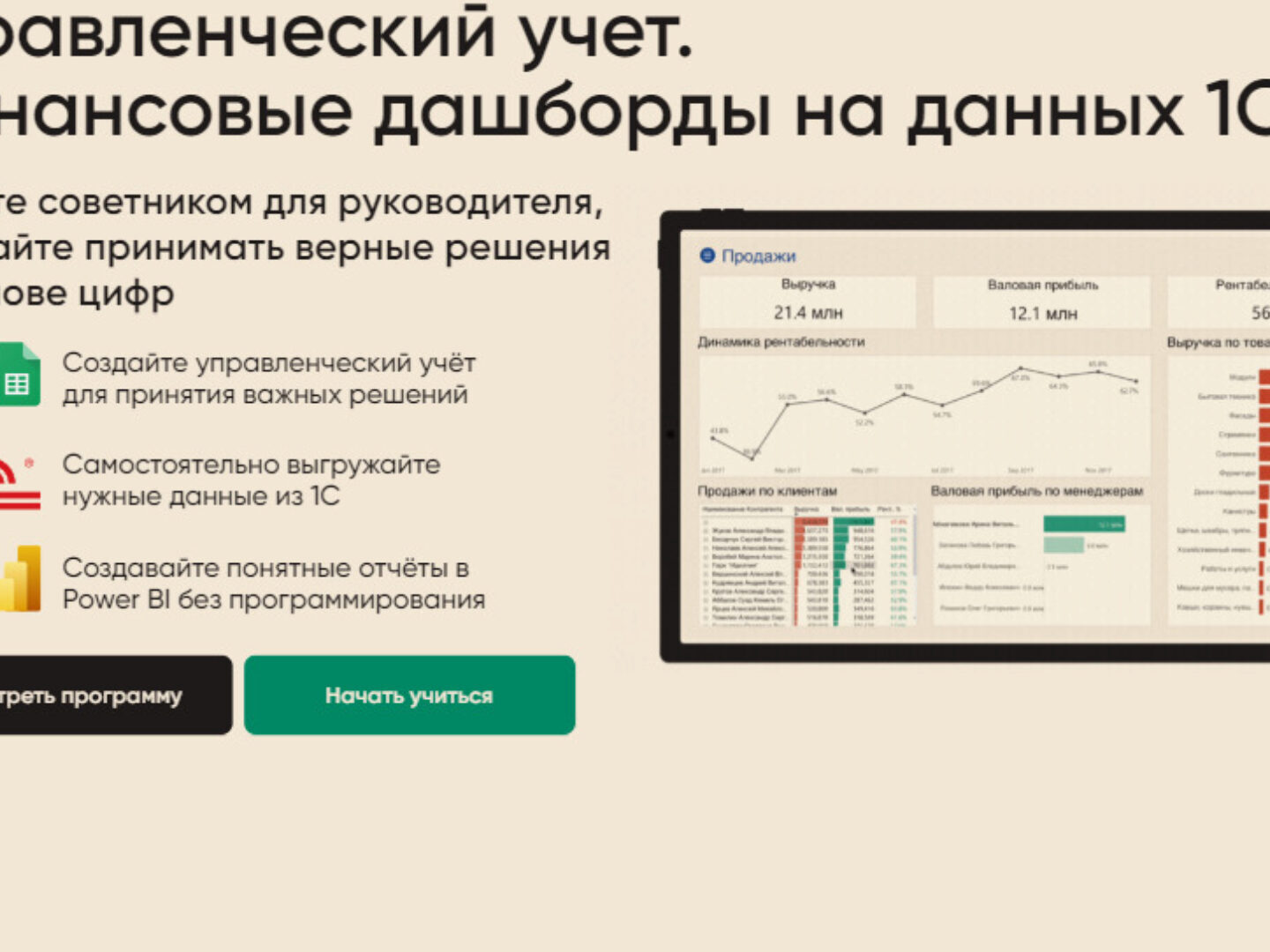 Отзывы о курсе «Управленческий учет. Финансовые дашборды на данных 1С. Все сам» от Алексея Колоколова, Алексея Холева