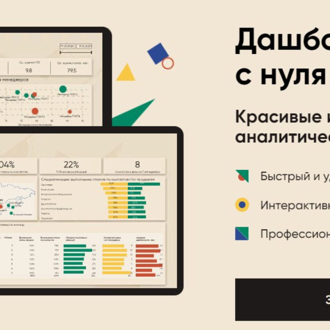 Курс для аналитиков и менеджеров Будете профессионально визуализировать данные без навыков в дизайне. И показывать руководству интерактивные дашборды вместо сложных таблиц. Освоите визуализацию данных Научитесь выстраивать структуру отчета понятно и полезно для директора. Поможете руководству