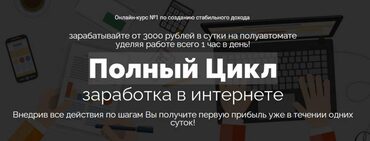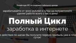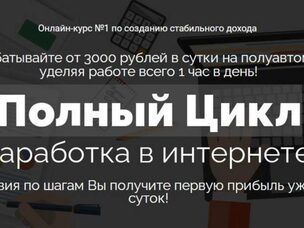 «Полный Цикл» — это целая обучающая программа по самому простейшему способу заработка в Интернете — заработок на партнерских программах в инфобизнесе + стратегия запуска своего инфобизнеса. Вот, сейчас тот, кто испугался слов «Партнерские программы», может покинуть мой сайт, я уже говорил, что курс предназначен не для халтурщиков и не для лентяев.