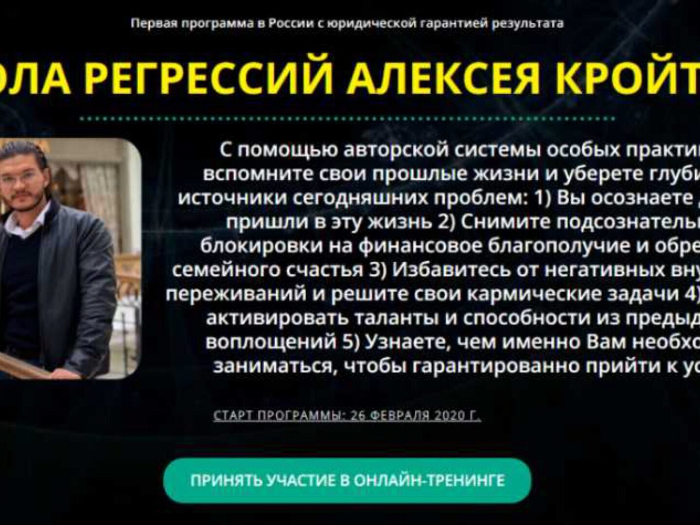 (первый в России онлайн-тренинг по обучению регрессиям с юридической гарантией результата)
