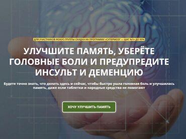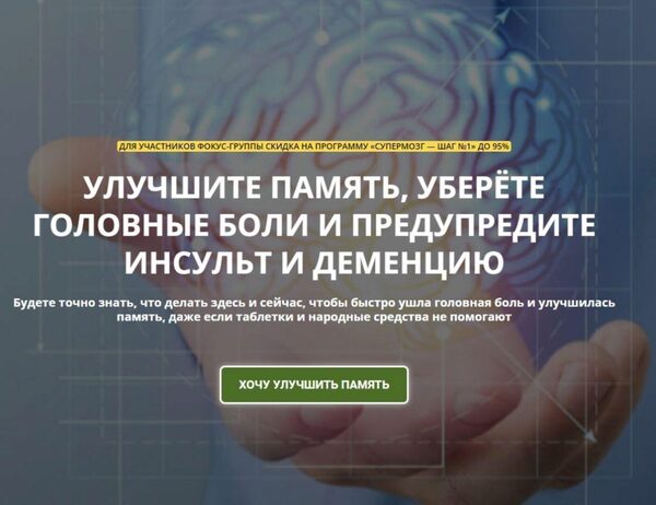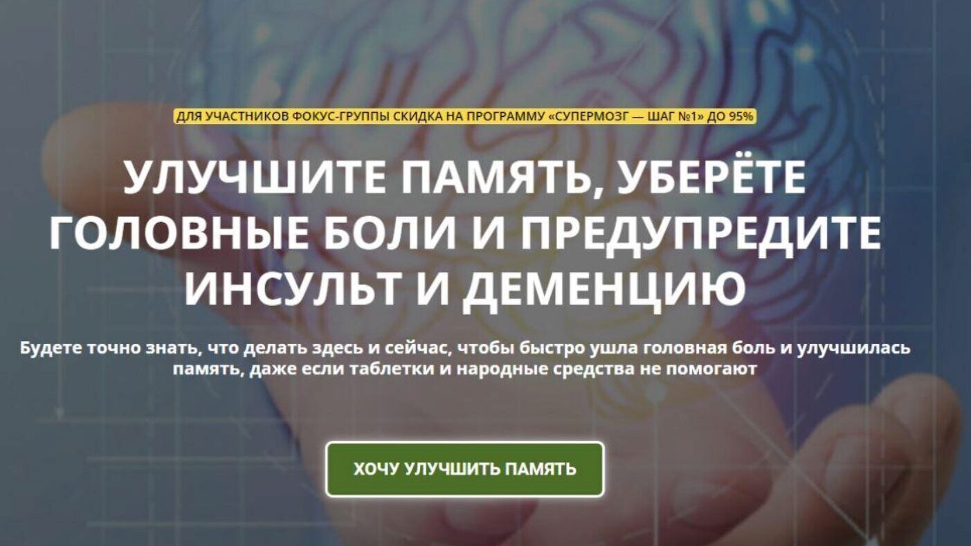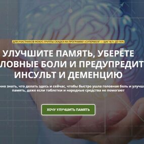Программа поможет тем, кому за 50, убрать головную боль, улучшить память и снизить риск появления деменции и инсульта. Вы сможете легко и надолго запоминать важные даты, имена и события и улучшить кровообращение мозга