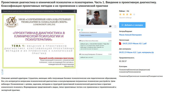 Алексей Мосин Вебинары «Проективная диагностика в клинической психологии и психотерапии» — УИПКиП слив скачать