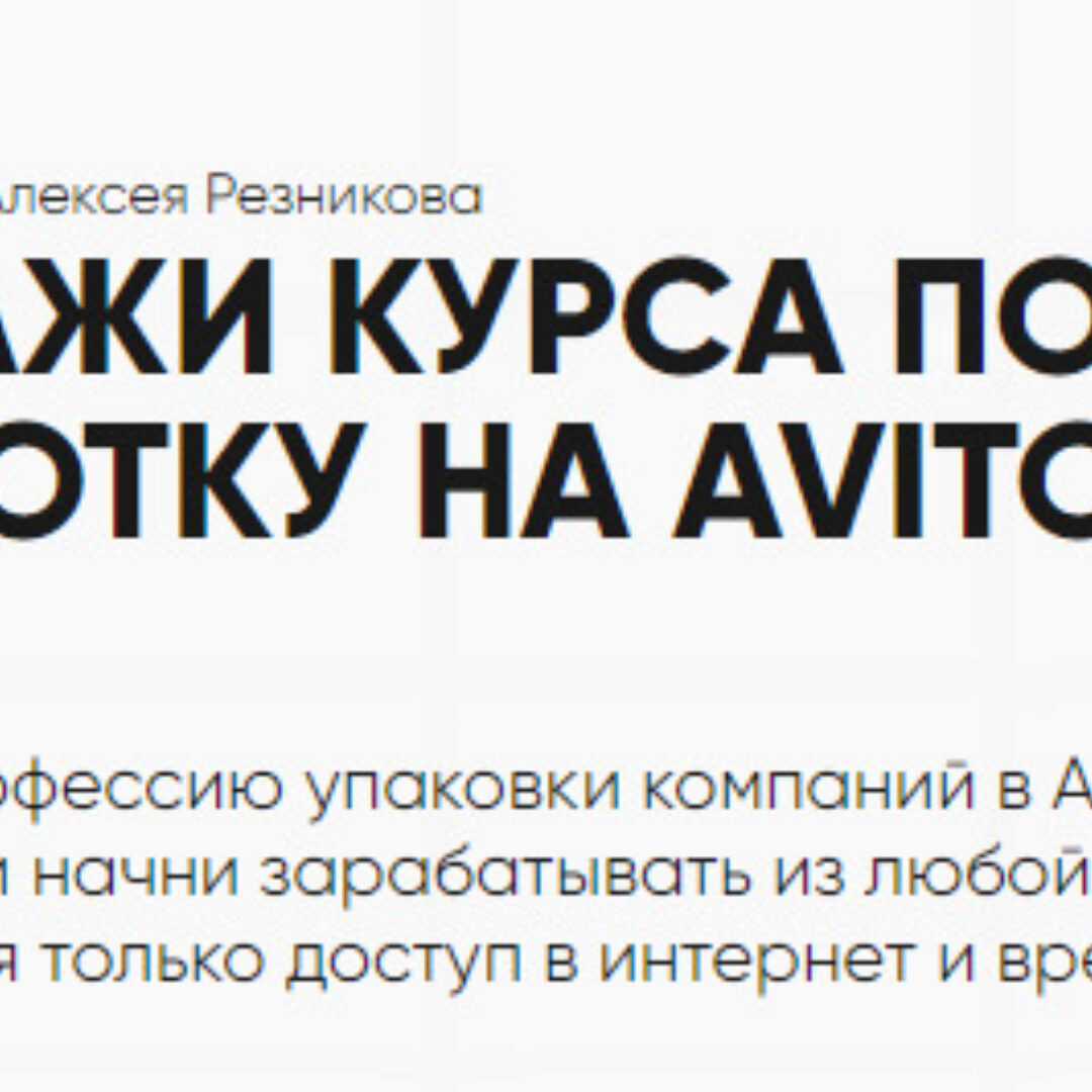 Алексей Резников «Курс по заработку на Avito. Тариф - Авитолог» слив скачать