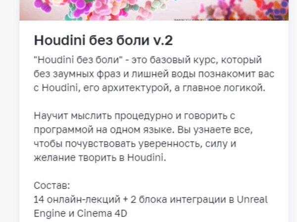 Отзывы о курсе «Houdini без боли v.2. Лайт формат» от Алексея Солодовникова