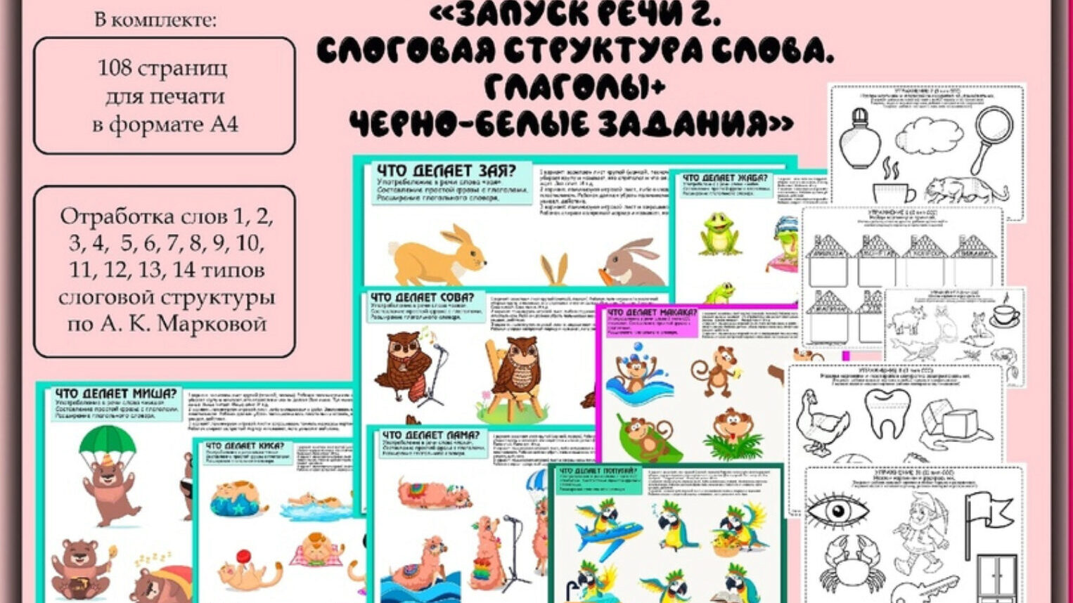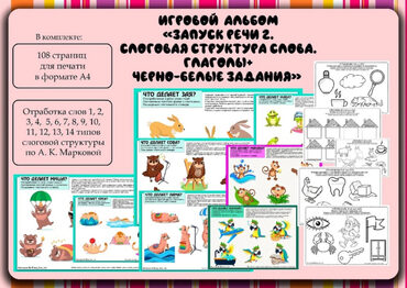 Запуск речи 2. Слоговая структура слова. Глаголы & Чёрно-белые задания.