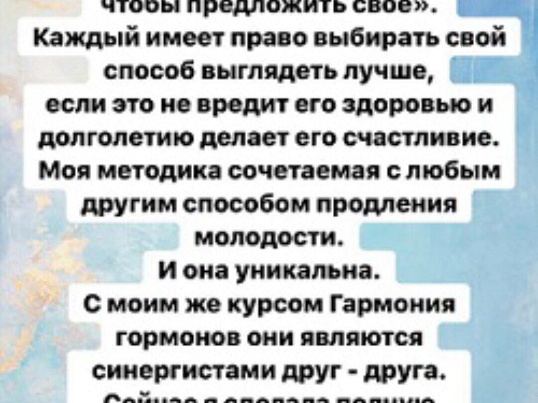 Курс «Гармония гормонов» - обучение участников сохранению и восстановлению фундамента молодости и здоровья с помощью методов натуропатии. Курс содержит мощнейшие техники: 1. Активациии эндокринных желёз 2. Восстанавливающими работу рецепторов к гормонам 3. Направленные на устранения дефицита