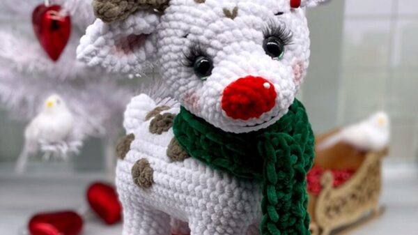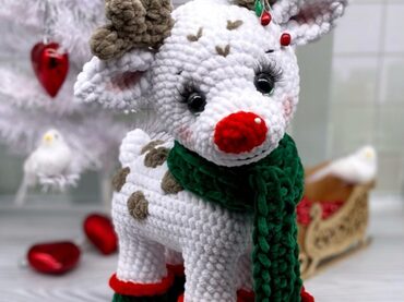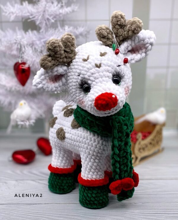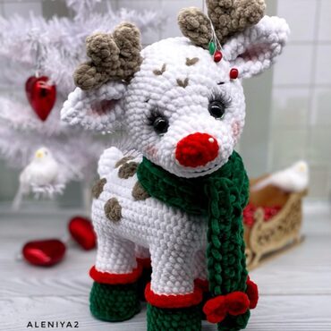 Рост оленей у меня, связанных из Himalaya Dolphin Baby или Yarn Art Dolce примерно 27 см, без учета рожек.