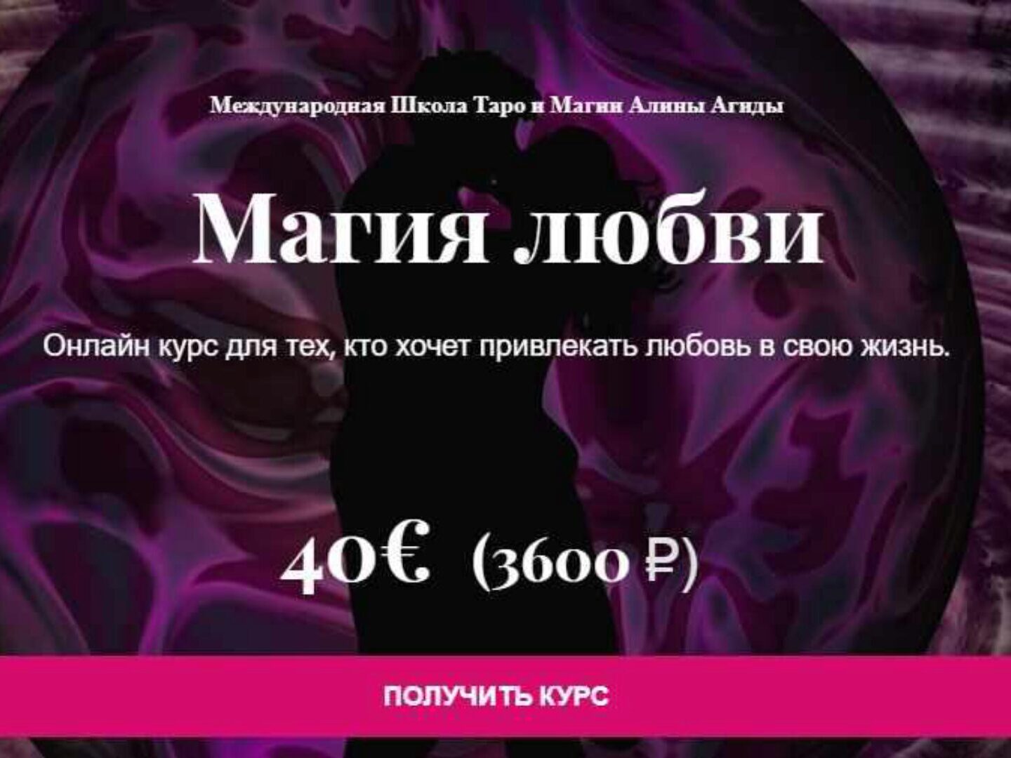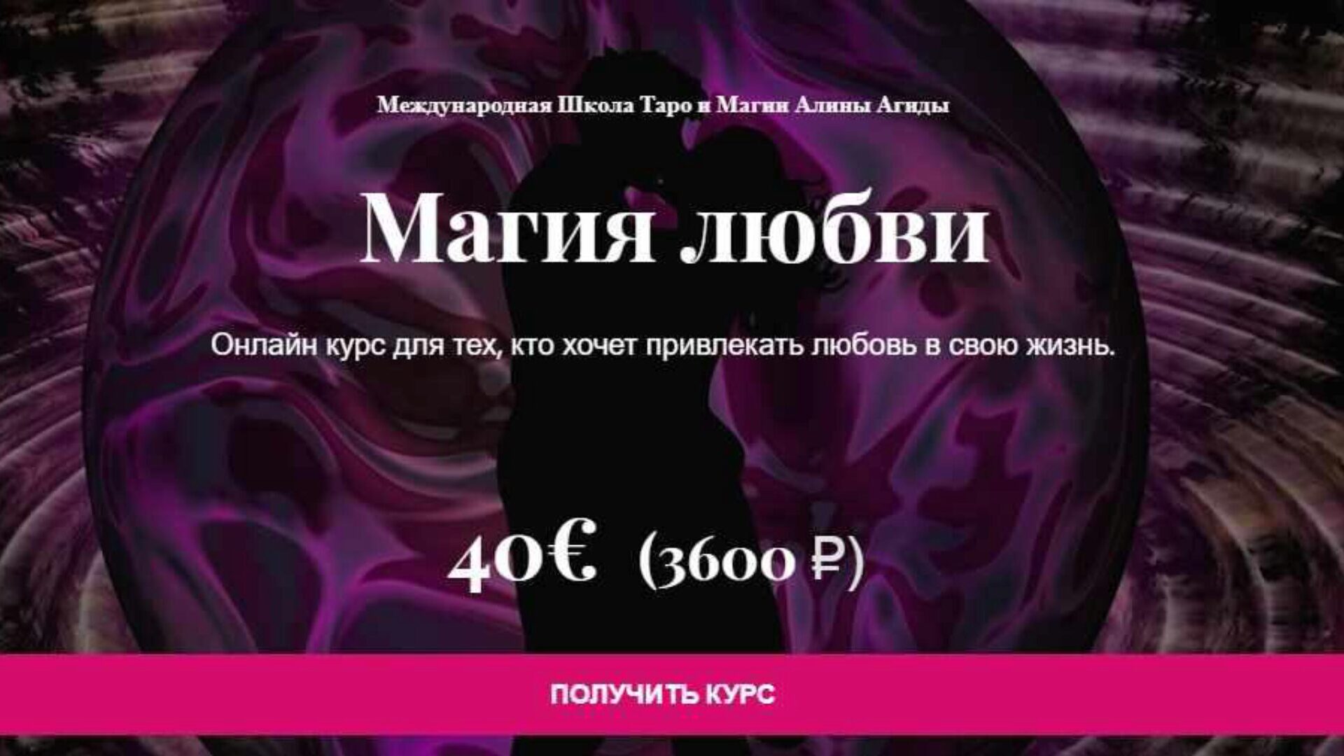 Международная Школа Таро и Магии Алины Агиды Денежная магия Онлайн курс для тех, кто хочет увеличивать денежную энергию! Творите свою жизнь собственными руками. Программа занятий Денежная энергия, правила обращения с деньгами, кошельком Снятие порчи на деньги, очищение денежного канала Накачка