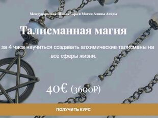 Базовый вариант Древнейшая, традиционная и проверенная веками система магической работы — это создание особых предметов, наделенных силой, талисманов и амулетов. Во всех культурах, у всех народов есть свои методики работы с талисманами и мы предлагаем вам курс Западной талисманной магии,
