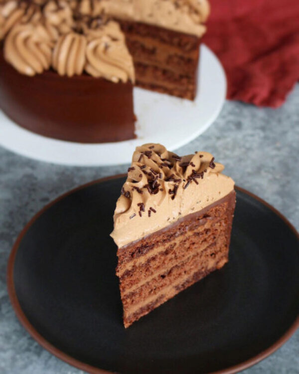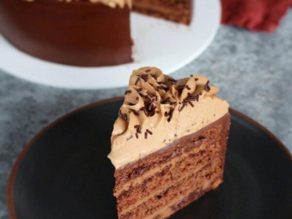 Шоколадные бисквиты, сироп с какао, нежное шоколадное кремю