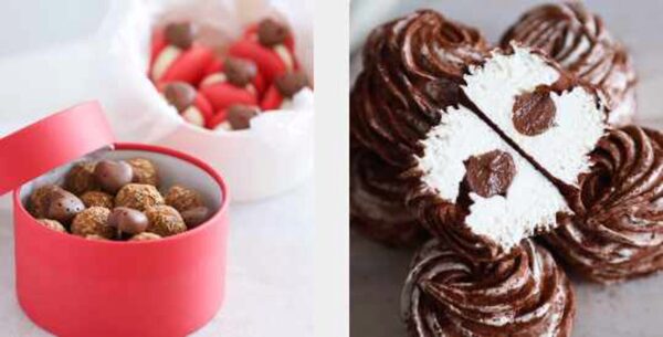 - Трюфели. Популярные вкусы: Фундук-Карамель, Манго-Маракуйя, Вишня-Амаретто, Апельсин-Бобы Тонка, Изюм-Ром, Мандарин-Корица, ягодный, кокосовый и фисташковый. Базовые рецепты для создания других вкусов