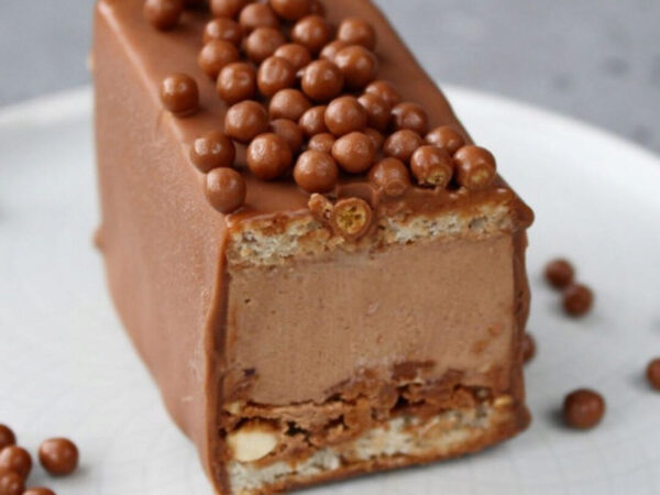 - Видео-урок «Ореховый латте»: ароматный фундучный бисквит «Джоконда», хрустящий слой с вафлей и фундуком, фундучный мусс на молочном шоколаде с легкой ноткой кофе, глазурь «Гурмэ» на покрытие.